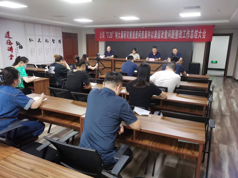 ? ? 8月19日,鄭州市市場(chǎng)發(fā)展投資有限公司召開(kāi)“7·20”特大暴雨災(zāi)害追責(zé)問(wèn)責(zé)案件以案促改暨問(wèn)題整改工作總結(jié)大會(huì),教育引導(dǎo)廣大黨員干部更好地把思想和行動(dòng)統(tǒng)一到習(xí)近平總書記重要講話和指示精神上來(lái),切實(shí)把教訓(xùn)變教材、把教材變方案、把方案變行動(dòng),推動(dòng)中央、省委、市委各項(xiàng)整改要求件件落實(shí)、條條落地、事事見(jiàn)效。公司領(lǐng)導(dǎo)趙潔、龐曉冰、孫濤、逯衛(wèi)川出席,公司本部全體人員、各子公司人員參加會(huì)議。